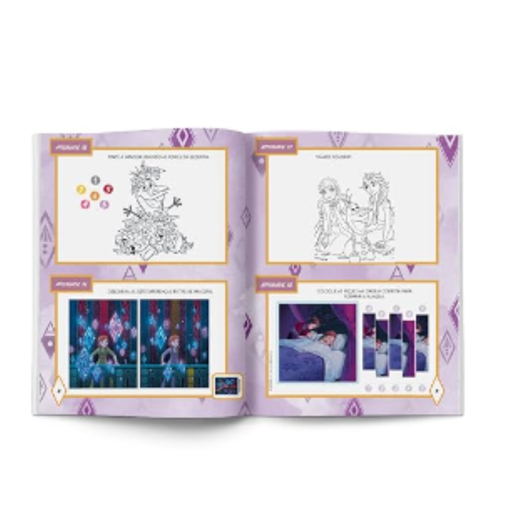 Este livro vem recheado com 100 atividades para se divertir e brincar. São jogos como 7 erros, sombra, código secreto, desenhos para colorir e muito mais! Elsa, Anna e seus amigos te esperam!
